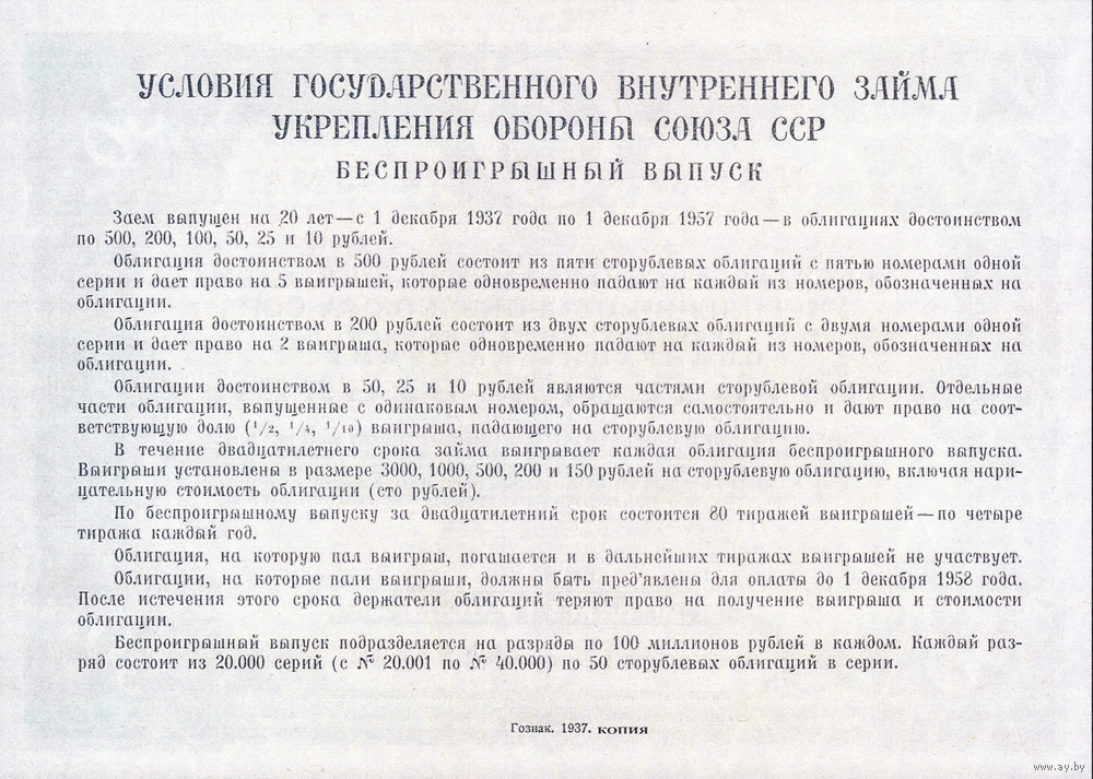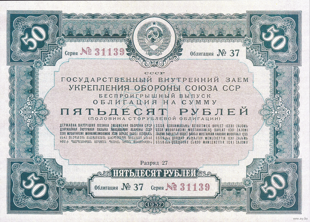 [КОПИЯ] Облигация 50 рублей 1937г. (водяной знак)