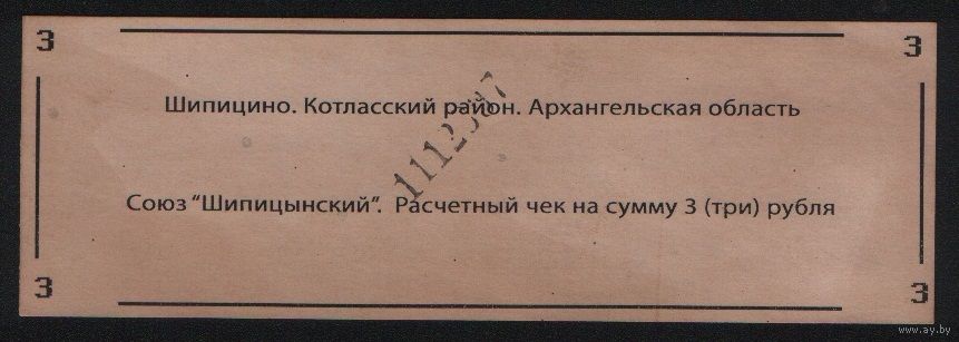 Копия Россия Архангельская обл Котласский район Шипицино Союз Шипицынский расчетный чек на 3 рубля n070 ТОРГ/ВАША ЦЕНА