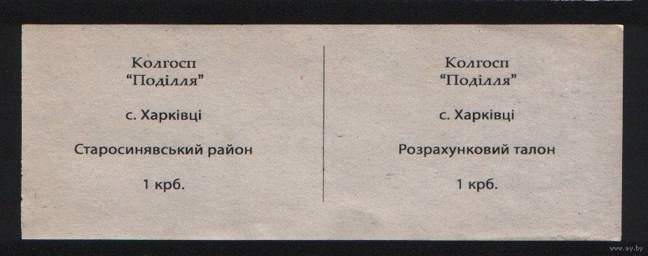Копия Украина колхоз Подiлля с.Харкiвцi Старосинявский район 1 крб. n056 ТОРГ/ВАША ЦЕНА
