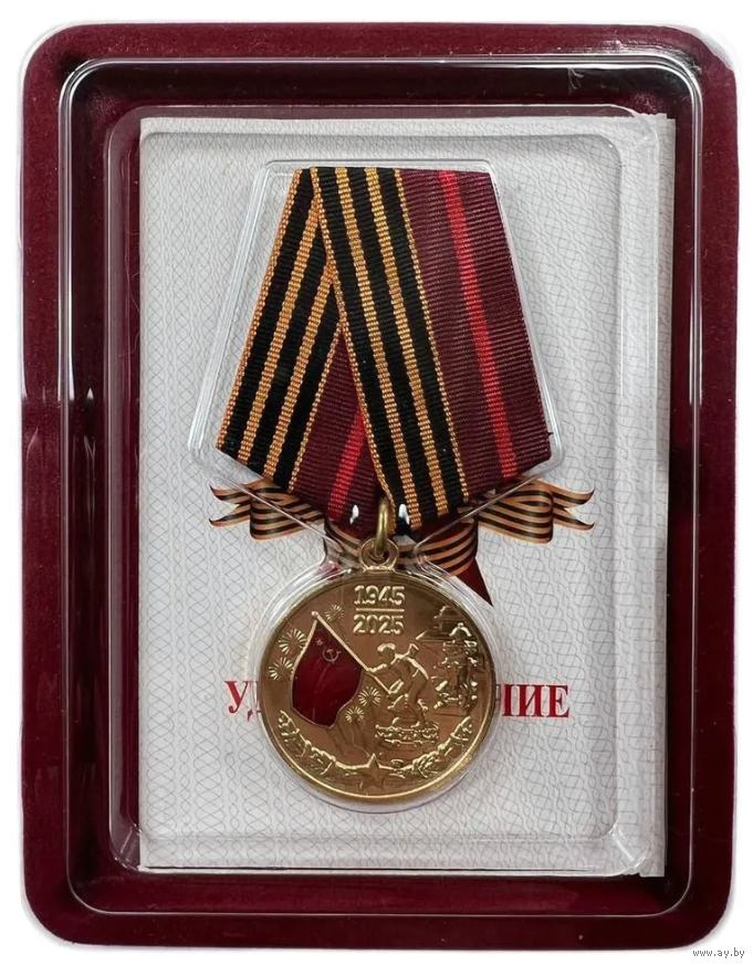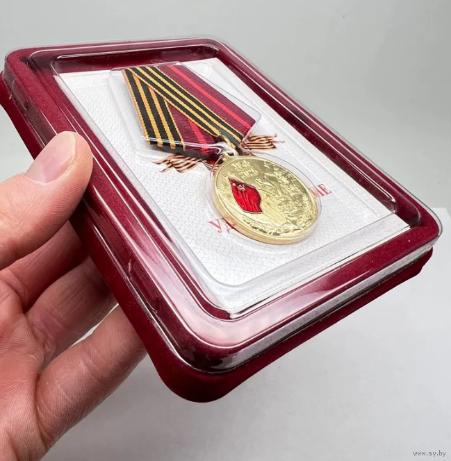Юбилейная медаль с удостоверением, подарочный футляр из флока. Производство РФ.
