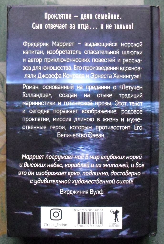 Фредерик Марриет - выдающийся морской капитан, изобретатель спасательной шлюпки и автор приключенческих повестей и рассказов для юношества. Его произведения вдохновляли Джозефа Конрада и Эрнеста Хемингуэя! Роман, основанный на предании о Летучем Голландце, создан на стыке традиций маринистики и готической прозы. Этот текст и сегодня поражает воображение: родовое проклятие, миссия длиною в жизнь и мужественные герои, которым противостоит Его Величество Океан…