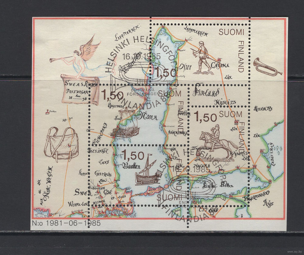 Корабли Финляндия 1985 Карта Фил.гашение