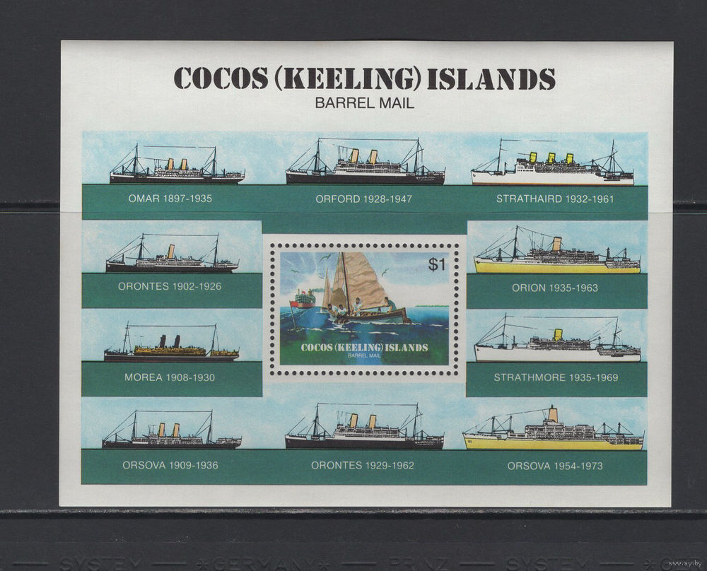 Корабли Кокосовые острова /Territory of Cocos (Keeling) Islands 1984 Бочковая морская почта (Barrel mail)