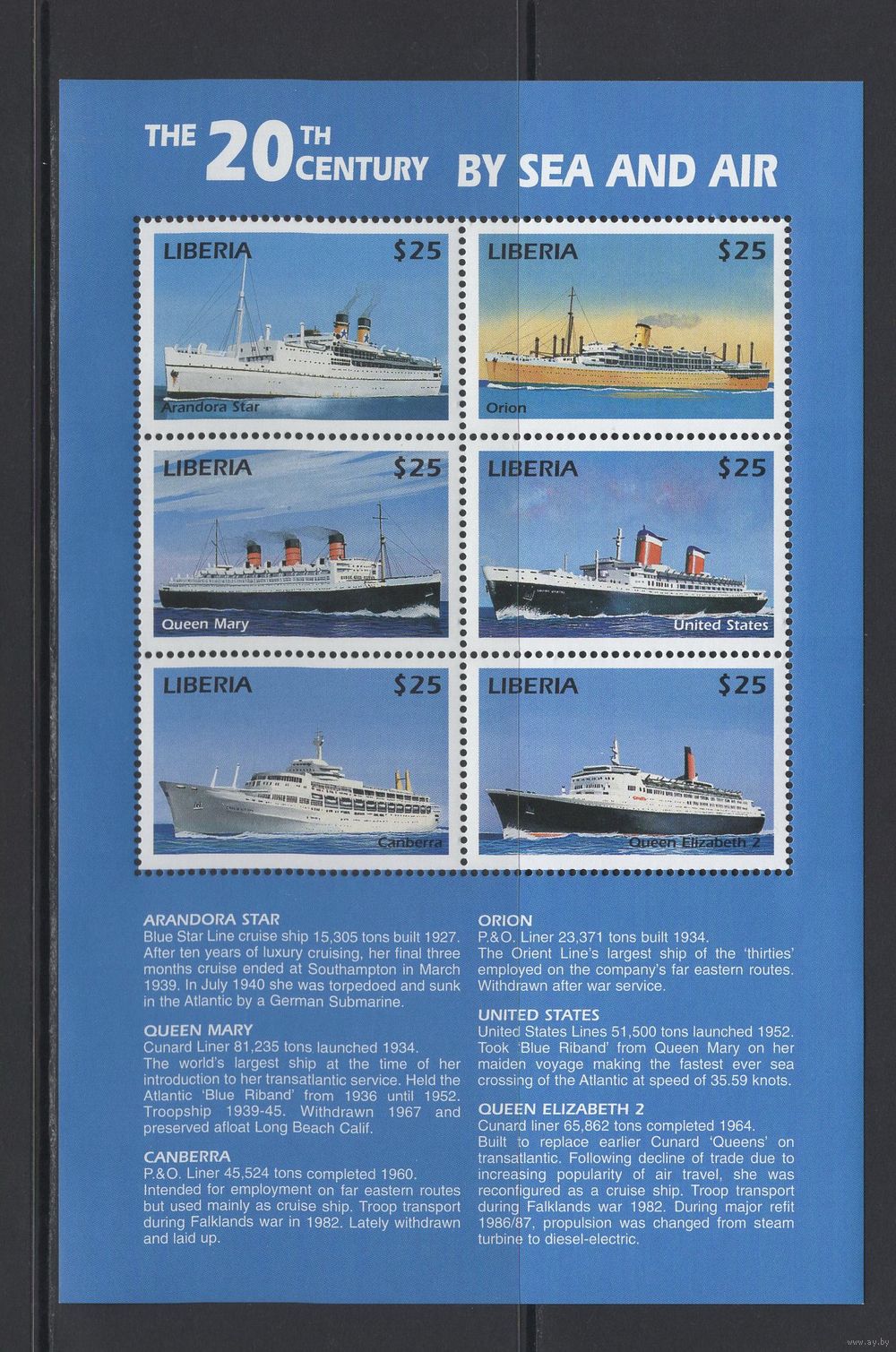Корабли Либерия 1999** История флота Круизные лайнеры Mi#2558-2563