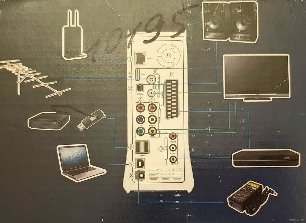 - процессор и тюнер (процессор Realtek RTD1283DD 400 МГц; гибридный тюнер цифровой DVB-T HD (MPEG4/H.264, MPEG2) и аналоговый PAL/SECAM);