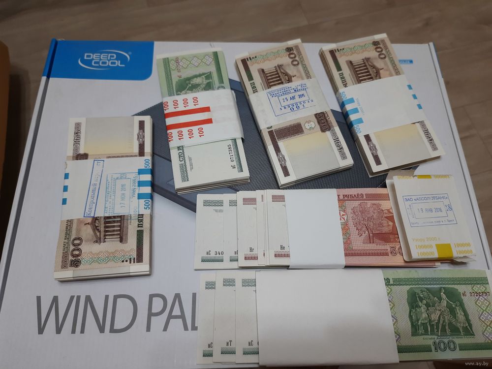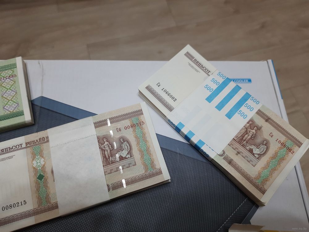 Всё банкноты без пробега. Несколько банковских корешков - остальное просто стопками...