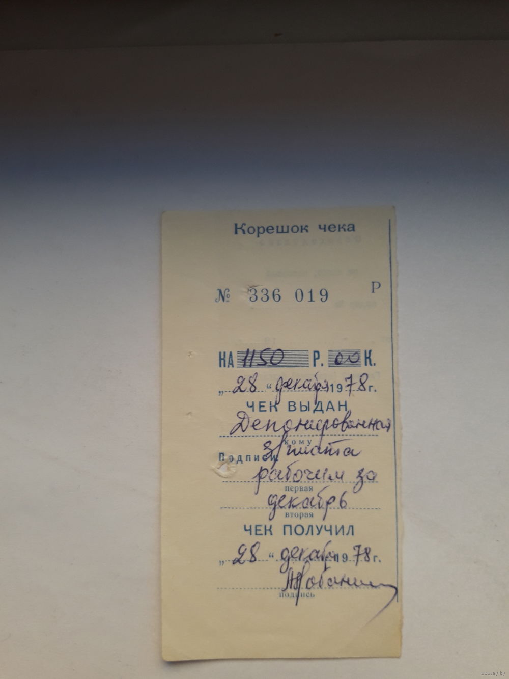 Корешок чека