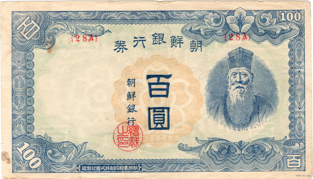 Корея, 100 вон, администрация США, 1947 г., не частые