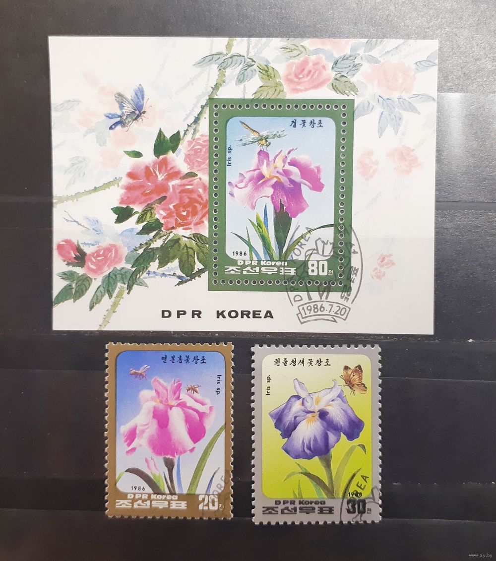Корея. 1986 год. Флора. Цветы. Блок и 2 марки (260)