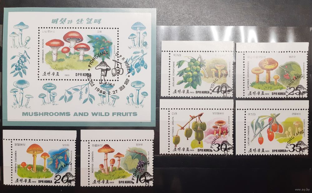 Корея. 1989 год. Флора. Грибы. Блок и 6 марок (978)