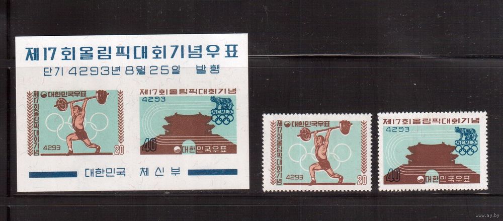 Корея Южная-1960,(Мих.307-308,Бл.148) , ** , Спорт, ОИ-1960(полная серия)