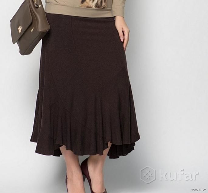 Красивая, качественная юбка миди, коричневого цвета ,фирмы "Madam T". На подкладке. Размер 54-56.Практически новая, одевала пару раз. Очень красиво ложится внизу фалдами. Пояс сзади на резинке.Ткань мягкая, приятная на ощупь, немного эластичная. Длина юбки 80 см. Высылаю почтой наложенным платежом. В случае пересылки предоплата 10 руб. (можно скинуть на телефон)