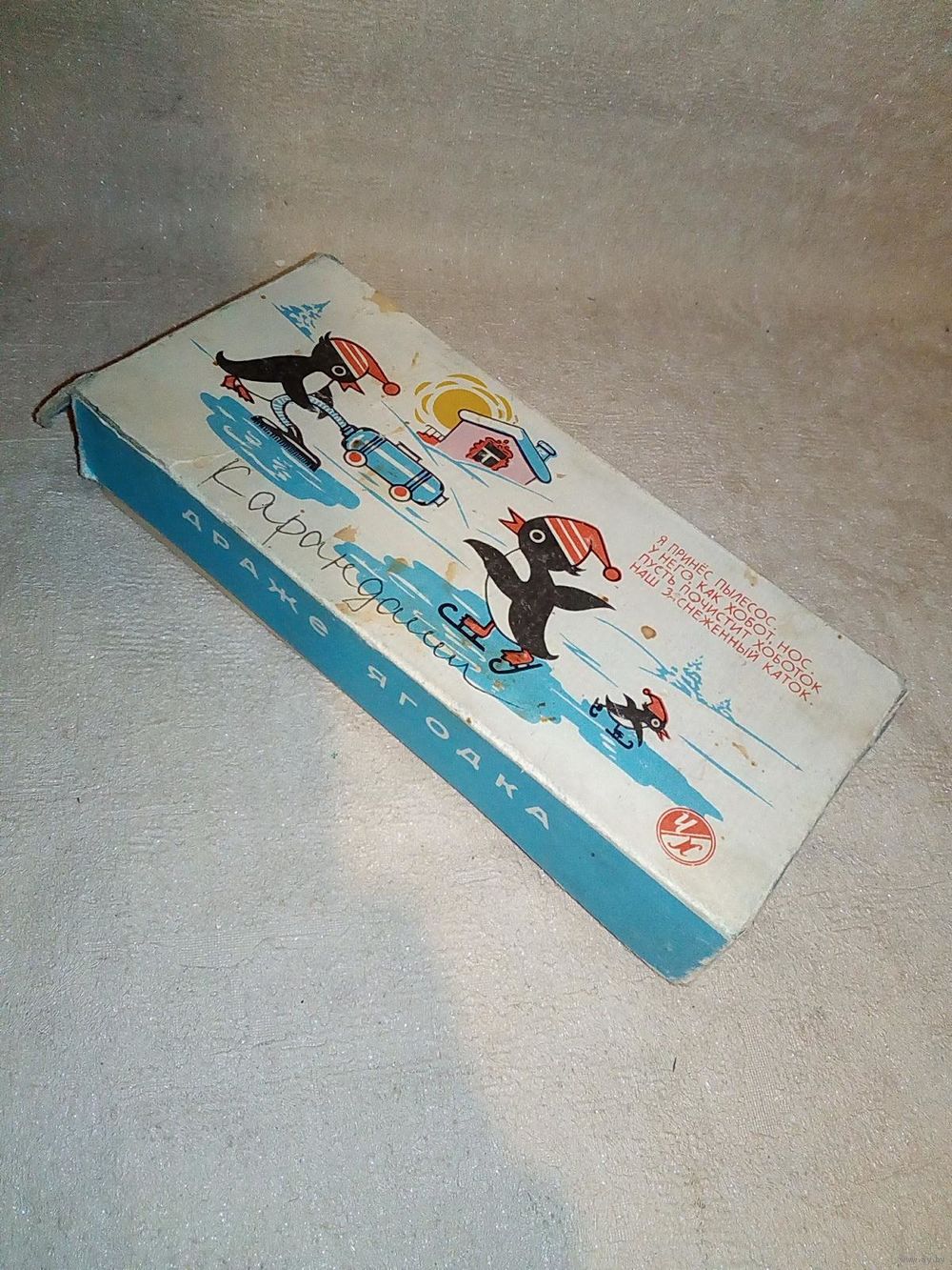 Коробка #7 Драже Ягодка Реклама пылесоса Красный пищевик Чырвоны харчавік Бобруйск СССР 1964 г ? ракета