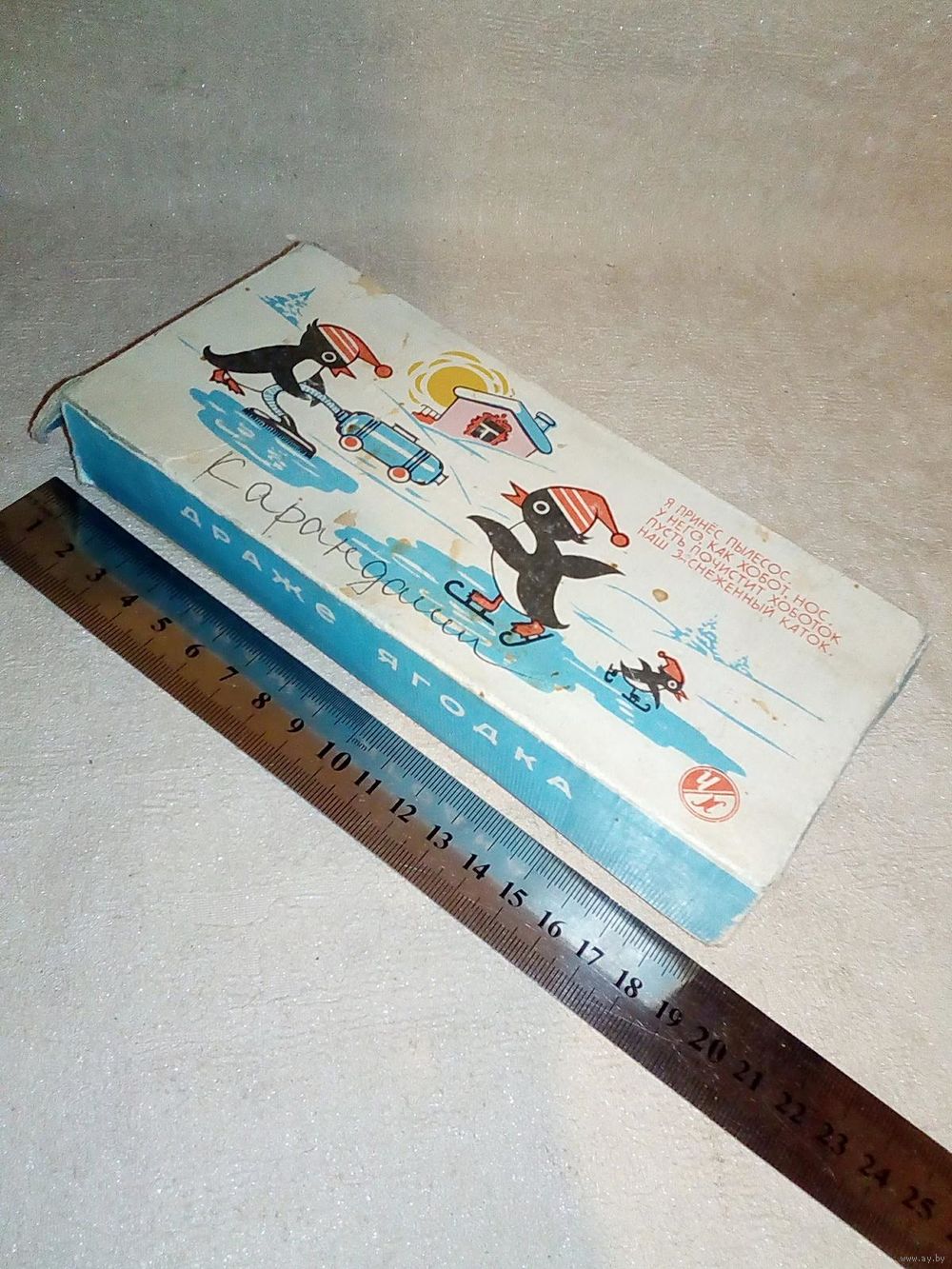 Коробка #7 Драже Ягодка Реклама пылесоса Красный пищевик Чырвоны харчавік Бобруйск СССР 1964 г ? ракета