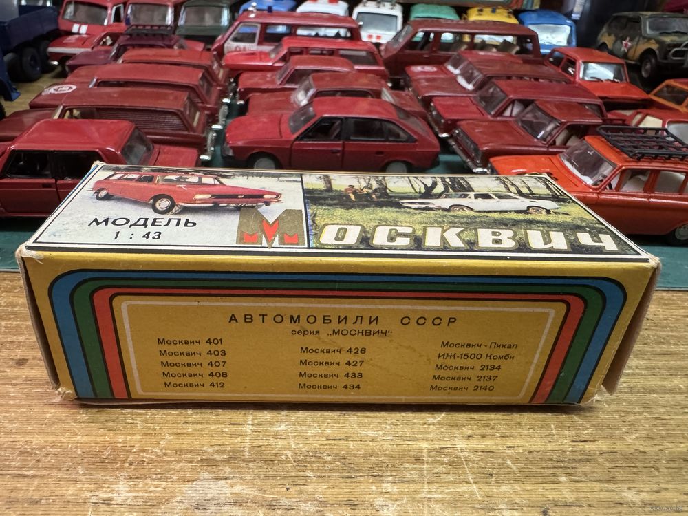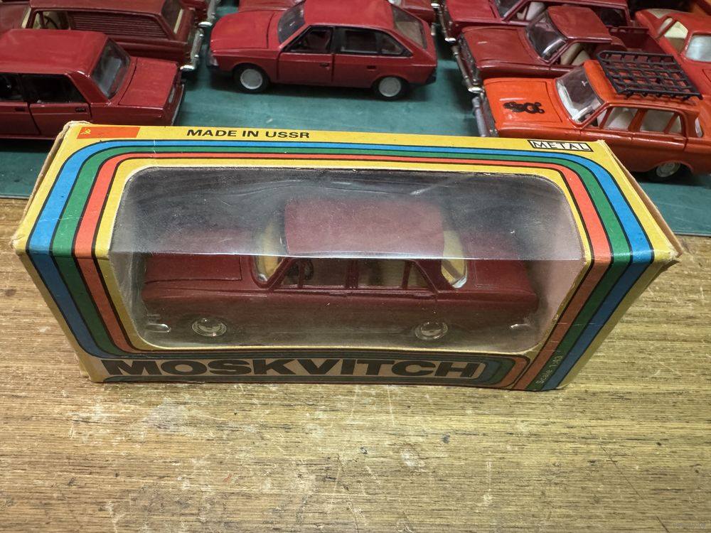 Коробка к Москвичам штамп ОТК, без даты, но ещё с надписью "Made in USSR". Тантал, Агат, Саратов с рубля. Предновогодняя саратовская серия в красном цвете. Модель, что на фото, продается отдельно. Распродажа коллекции. Смотрите и другие мои модели.