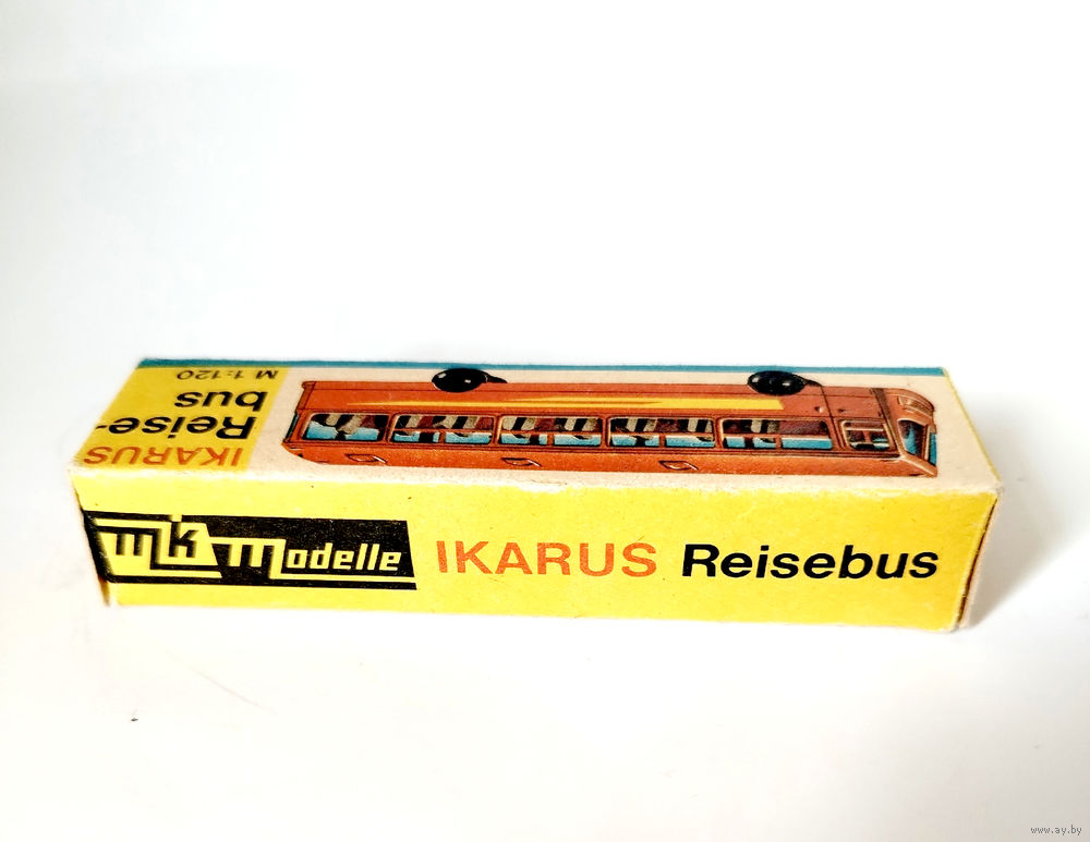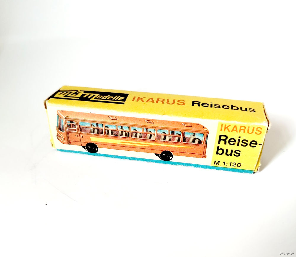 Коробка от винтажной коллекционной модели автобуса Икарус в масштабе 1:120 (типоразмер ТТ), производившуюся в ГДР для макетов железных дорог.