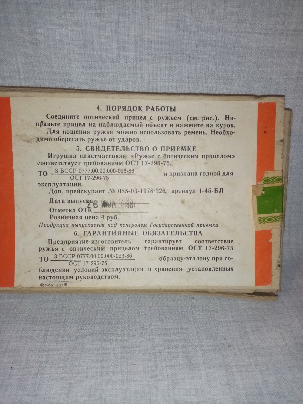 Коробка от Ружьё с оптическим прицелом СССР БССР Минск Завод им. Вавилова 1988 г упаковка игрушка