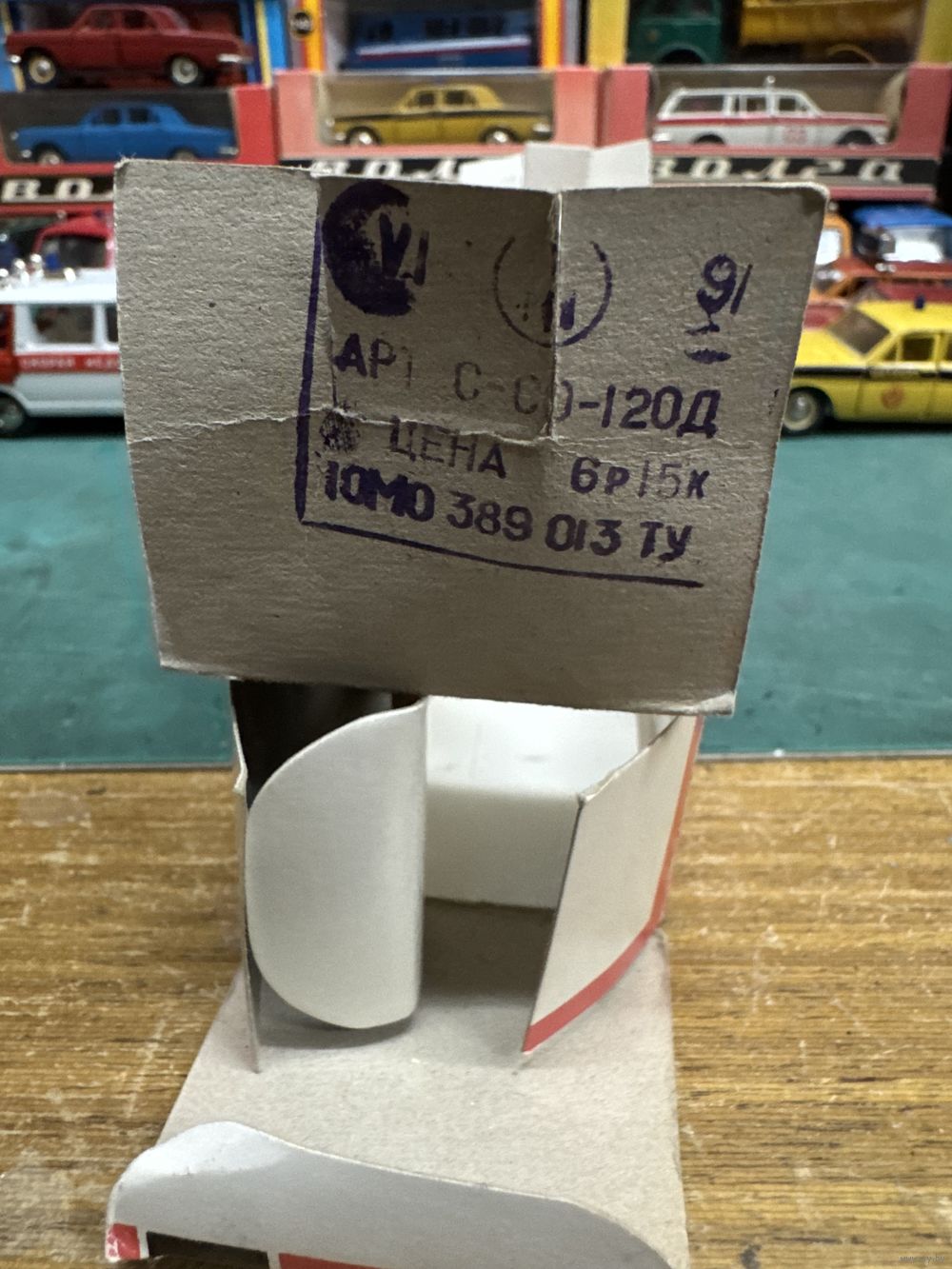 Коробка с просечками к Волга ГАЗ-24 ГАИ милиция, артикульный штамп июнь 1991 года, С-СО-120д и ценой 6 руб.15 коп именно для милицейской Волги, Тантал, Агат, Саратов с рубля. В отличном сохране для бумажного артефакта, которому через полгода исполнится 35 лет!