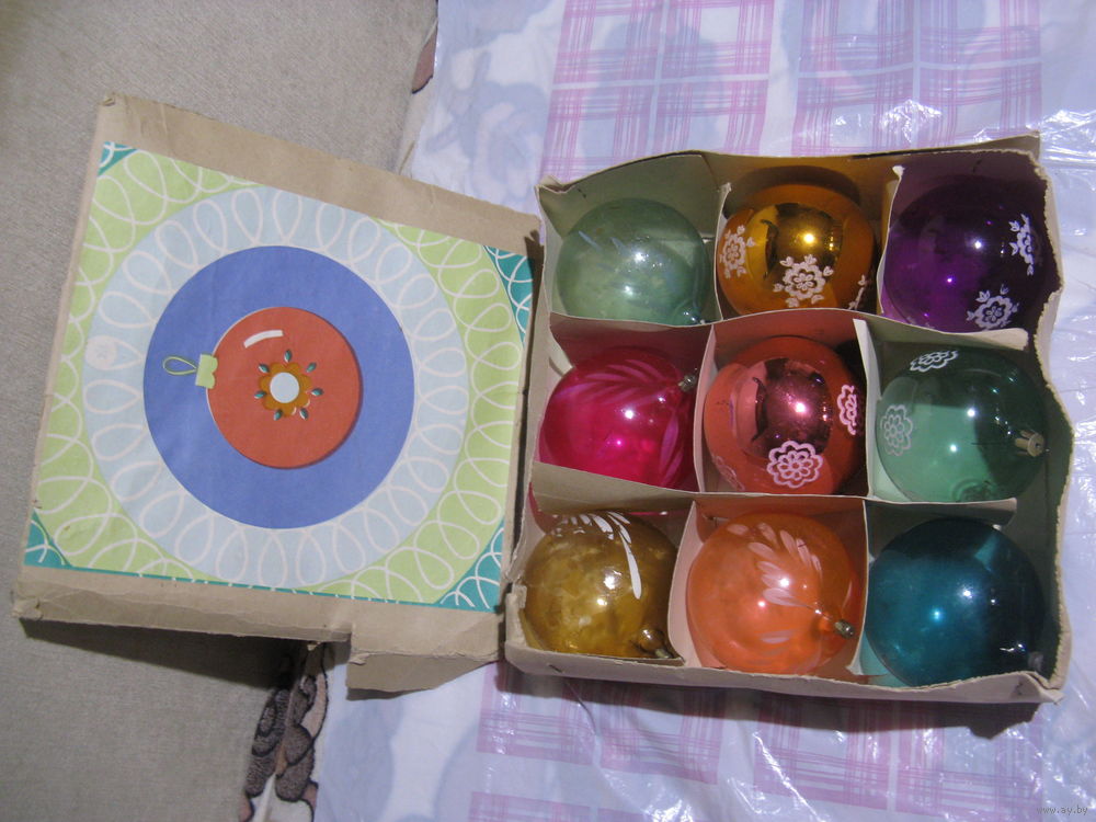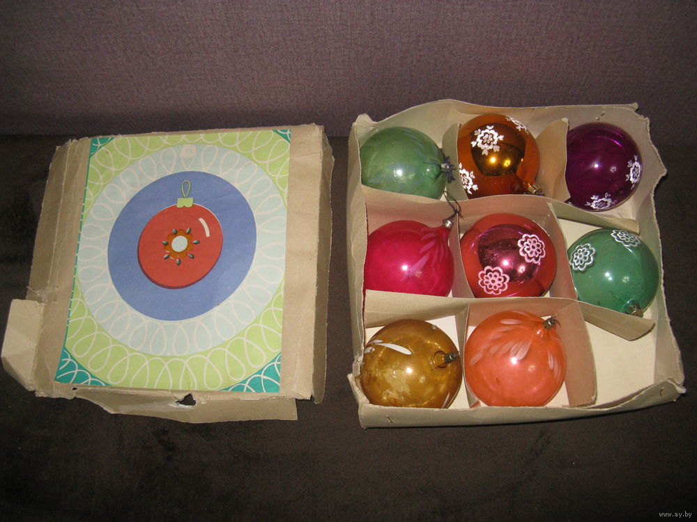 Продам Коробка ёлочных игрушек СССР большие шары диаметром 10 см