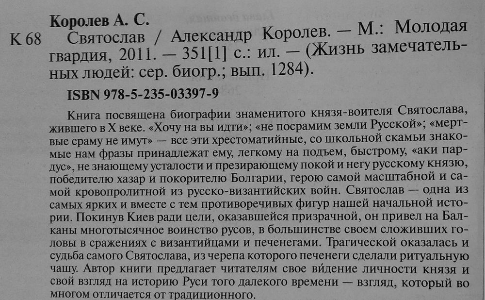 Королев Александр. Святослав. ЖЗЛ. Жизнь замечательных людей. М. Молодая гвардия. 2011 г. 351с. Твердый переплет.