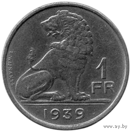 КОРОЛЕВСТВО БЕЛЬГИЯ. 1 ФРАНК 1939. ЛЕВ. Валлонская легенда.