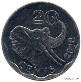 КОРОЛЕВСТВО ЭСВАТИНИ. 20 ЦЕНТОВ 2018. ФАУНА. СЛОН. Новое название государства- ESWATINI