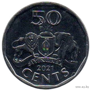 КОРОЛЕВСТВО ЭСВАТИНИ. 50 ЦЕНТОВ 2021. ФАУНА. СЛОН. ЛЕВ. Новое название государства- ESWATINI