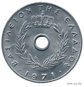 КОРОЛЕВСТВО ГРЕЦИЯ. Режим Полковников. 10 ЛЕПТ 1971. ГОД ТИП /с малым отверстием/. НЕЧАСТАЯ.