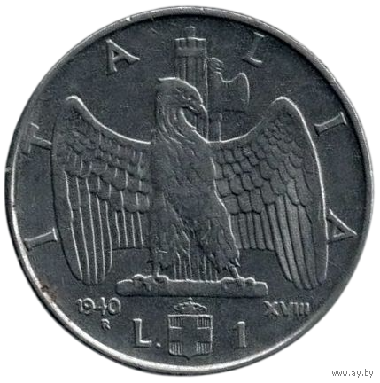 КОРОЛЕВСТВО ИТАЛИЯ. 1 ЛИРA 1940. НЕМАГНИТ.