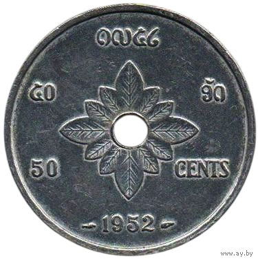 Королевство Лаос. (Индокитайская Федерация). Французский Лаос. 50 сантимов 1952