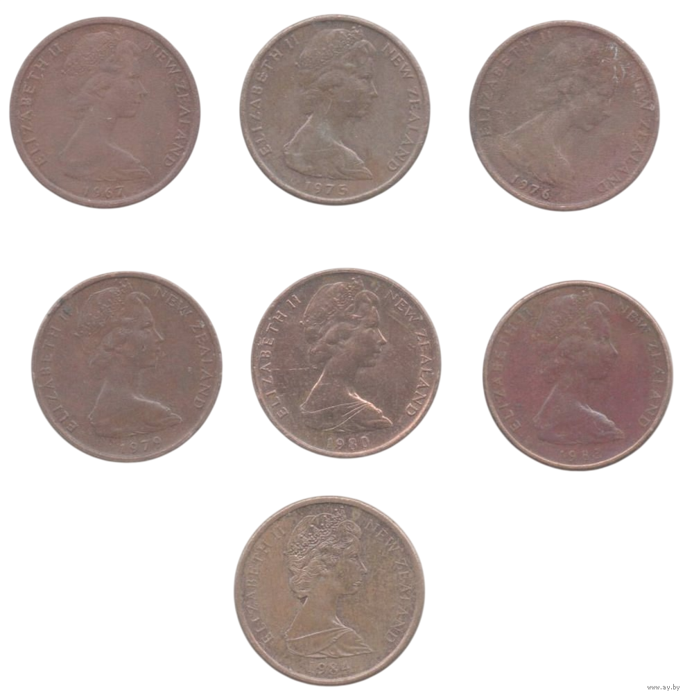 Королевство Новая Зеландия. 1 цент 1967, 1975, 1976, 1979, 1980, 1983, 1984. 2-й тип портрета. Серебристый папоротник- национальный символ. Цена за одну монету.