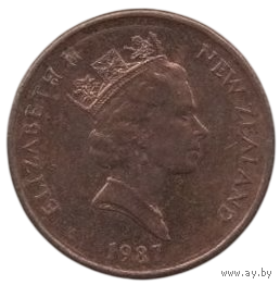 Королевство Новая Зеландия. 2 цента 1987. Цветок коухай (софора). 3-й тип портрета Королевы. Нечастая.