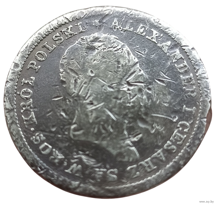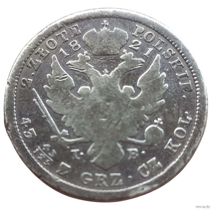 КОРОЛЕВСТВО ПОЛЬСКОЕ /КОРОЛЕВСТВО КОНГРЕССОВОЕ/. 2 ЗЛОТЫХ 1821. КОРОЛЬ АЛЕКСАНДР I. СЕРЕБРО. НЕЧАСТАЯ