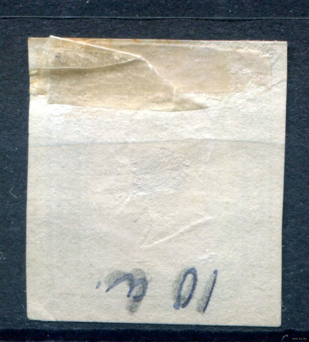 Королевство Сардиния-Пьемонт, Италия - 1855/63г. - король Виктор Эммануил II, 5 с - 1 марка - MH с жёлтыми пятнами сверху, есть маленькое тонкое место по центру [Mi 10 c]. #1-It-14-A-2