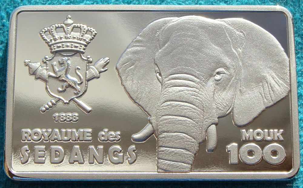 Королевство Седанг 100 моук 2025 г. Слоны Короле́вство Седа́нг (фр. Royaume des Sedangs) — виртуальное государство, образованное в конце XIX века французским авантюристом Мари-Шарлем Давидом де Майрена на части современного Вьетнама. Майрена, бывший французский правительственный чиновник с сомнительной репутацией, в 1888 году был владельцем плантации во Французском Индокитае. Когда король Сиама выдвинул территориальные претензии к Французскому Индокитаю, Майрена убедил колониального администратора разрешить ему отправиться с группой миссионеров в экспедицию вглубь Аннама (Вьетнам), для переговоров с местными племенами. По прибытии Майрена подружился с горным племенем седангов. 3 июня 1888 года вождями племён банар, ренгао и седанг Майрена был избран королём Королевства Седанг под именем Марий I. Окончательно Майрена закрепил свои позиции, когда сумел предотвратить вспышку очередной эпидемии при помощи оказавшихся у него лекарств. В знак благодарности вождь племени седангов отдал ему в жёны дочь. Вскоре Майрена отправился в путешествие по Юго-Восточной Азии и Европе. Во время своего путешествия Майрена щедро раздавал титулы, посвящал в рыцари, награждал медалями своих сторонников. Он также выпустил две серии марок королевства. Майрена предлогал уступить свое королевство Французской Третьей республике в обмен на монопольные торговые права. Когда французское правительство не ответило положительно, Майрена обратился к британцам в Гонконге. Получив там отказ, он отправился в Бельгию, где в 1889 году один финансист предложил предоставить ему оружие и деньги в обмен на разработку минералов королевства. Возвращению Майрены в Седанг воспрепятствовал французский флот, блокировавший вьетнамские порты и конфисковавший его оружие как контрабанду в Сингапуре. Король Марий I, обратившийся в ислам, умер 11 ноября 1890 года на острове Тиоман (Малайзия) при загадочных обстоятельствах (выдвигались различные версии: отравление, укус ядовитой змеи или в результате поединка). Впоследствии Королевство Седанг было аннексировано Францией и её протекторатом Аннамом.