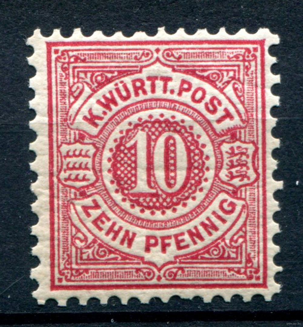 Королевство Вюртемберг - 1875г. - 10 Pf - 1 марка - MNH с потрескавшимся и слегка пожелтевшим клеем [Mi 46]. #1-Wu-24-A-1