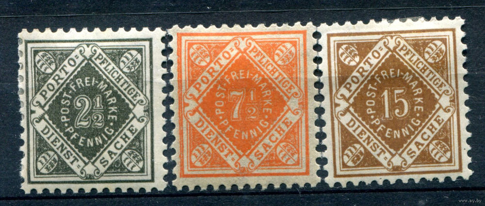 ![Королевство Вюртемберг - 1916/17г. - Служебные марки тип I. Цифры - 3 марки - полная серия, MH [Mi 119-121]. #1-Wu-24-A-1](https://s2-lot.aystatic.by/550x510/792/308/5040/5040308792_0.jpg)