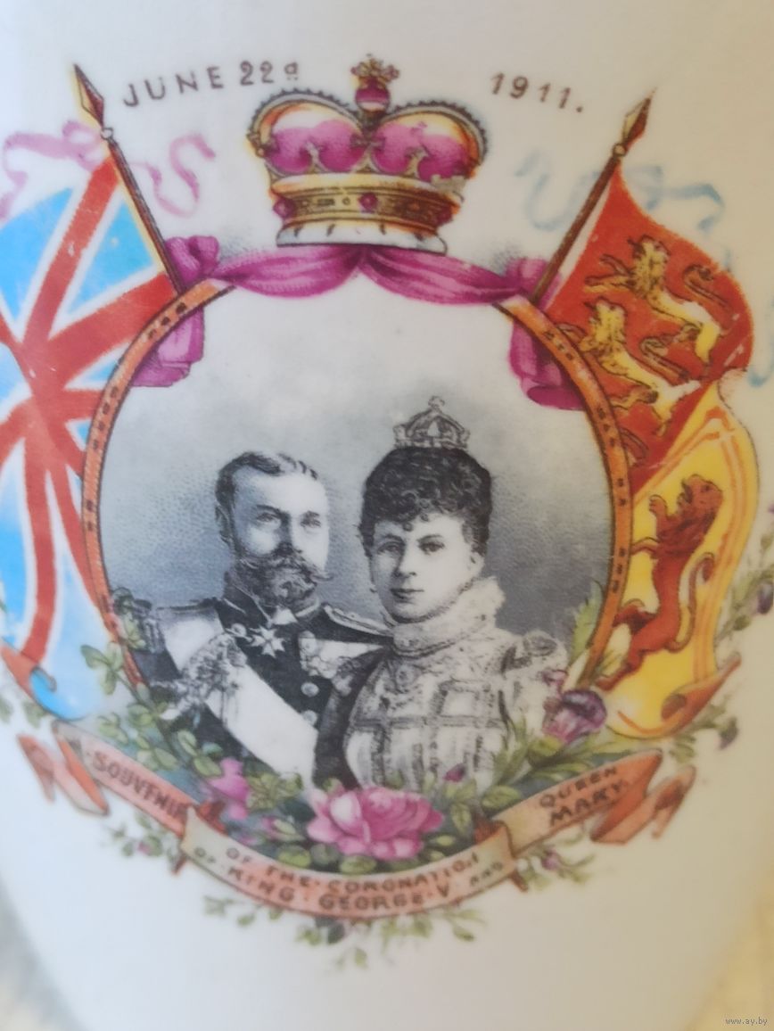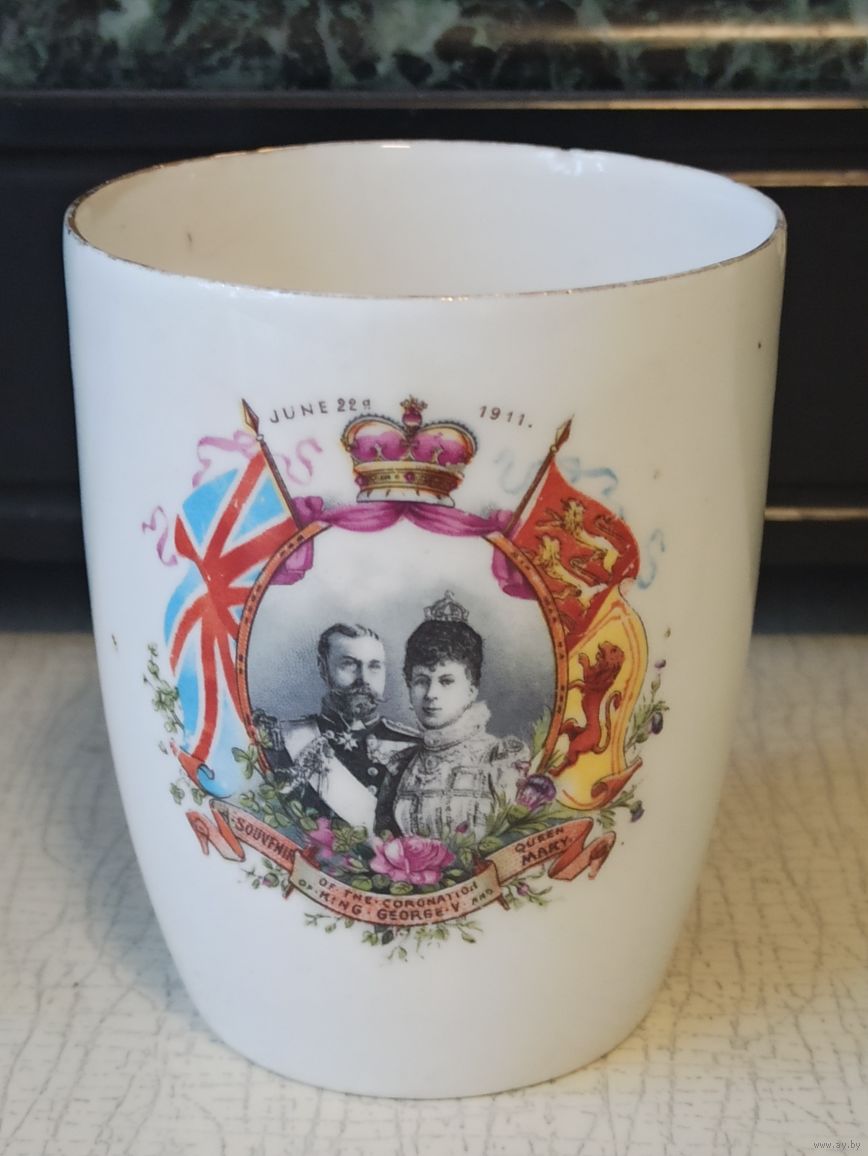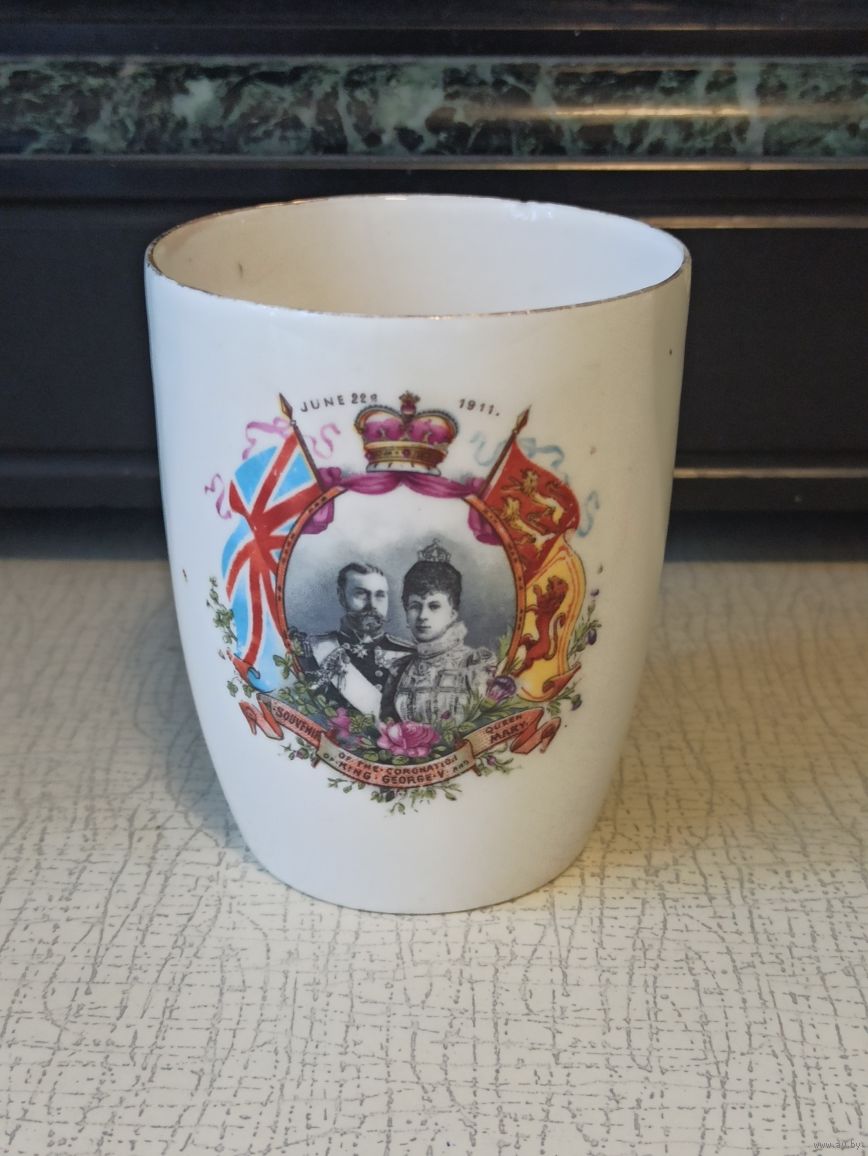 Антикварный английский коронационный стакан Crowned June 22 1911 Queen Mary King George V.