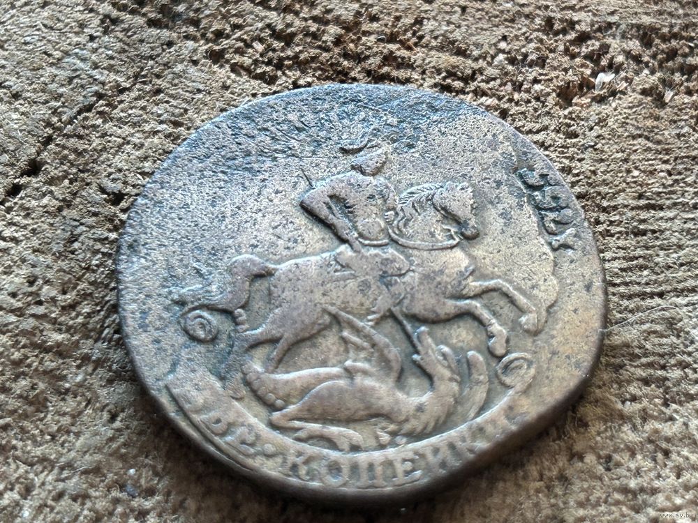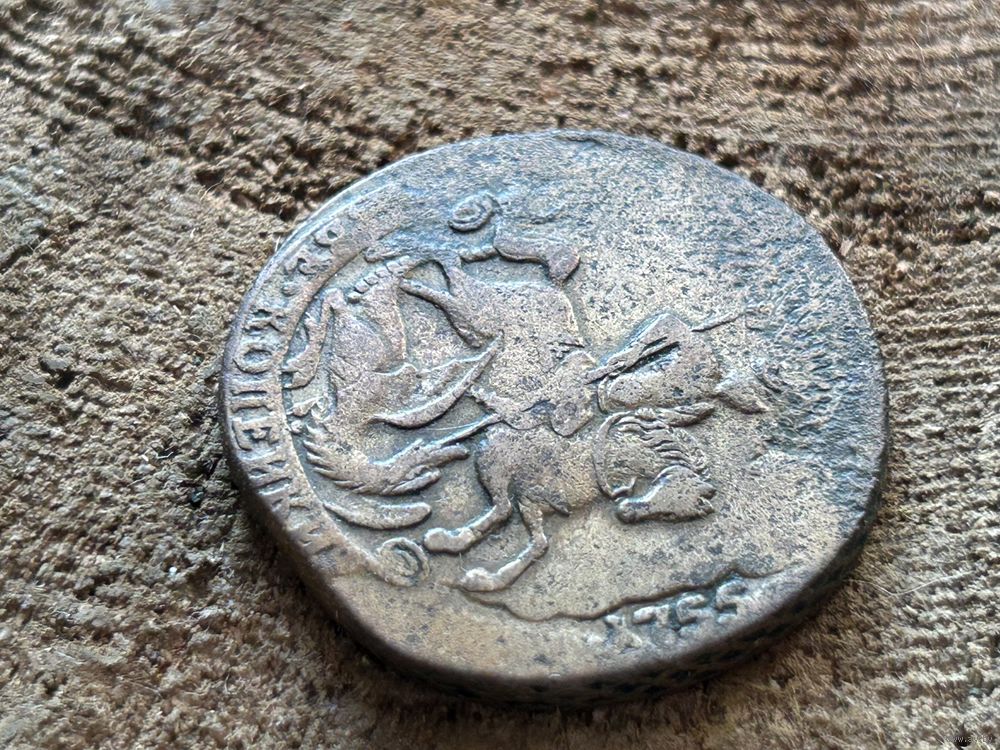 Отличные 2 копейки Елизаветы 2 с отличным перечеканом из 1 копейки 1755 года