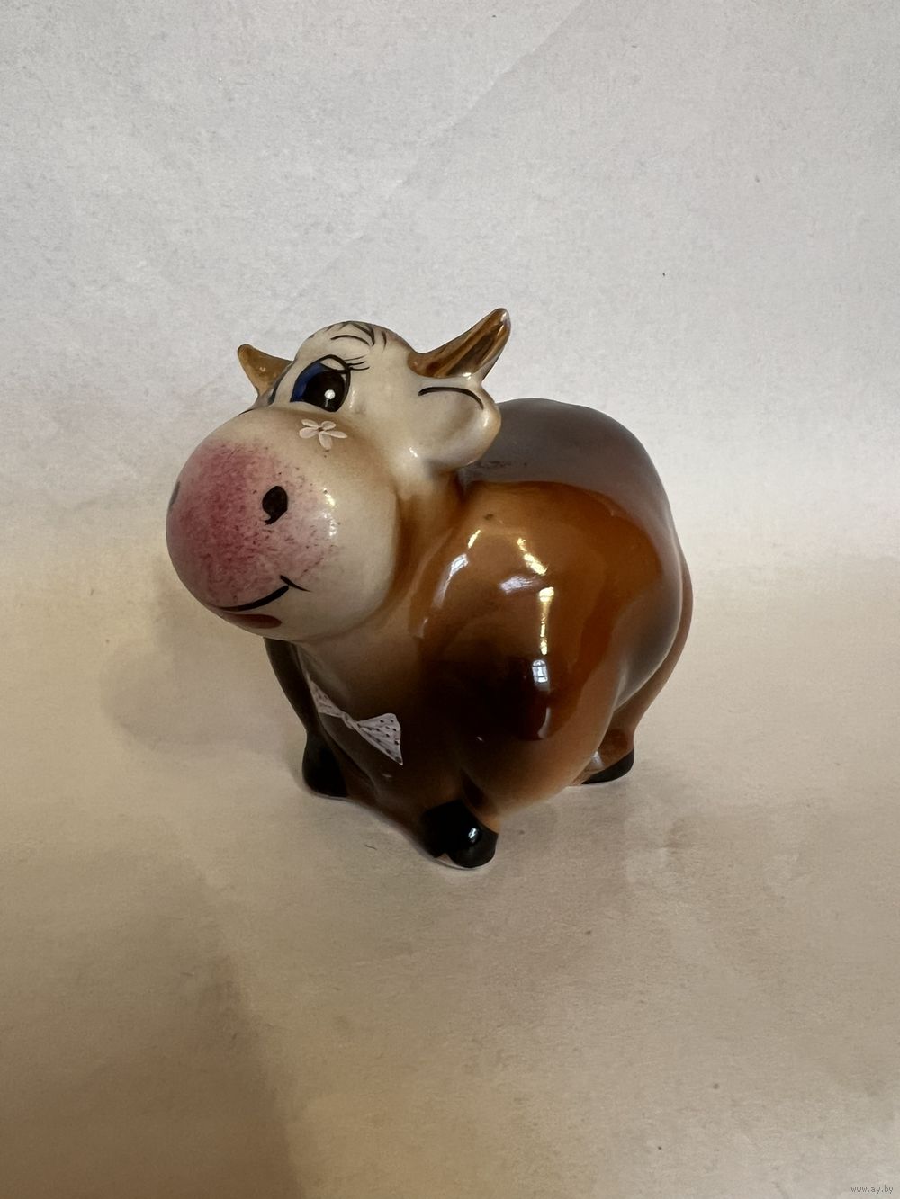 Фарфоровая статуэтка "Корова/Бык", высота 10 см, производство Добрушский Фарфоровый Завод (ДФЗ). Почта, европочта.