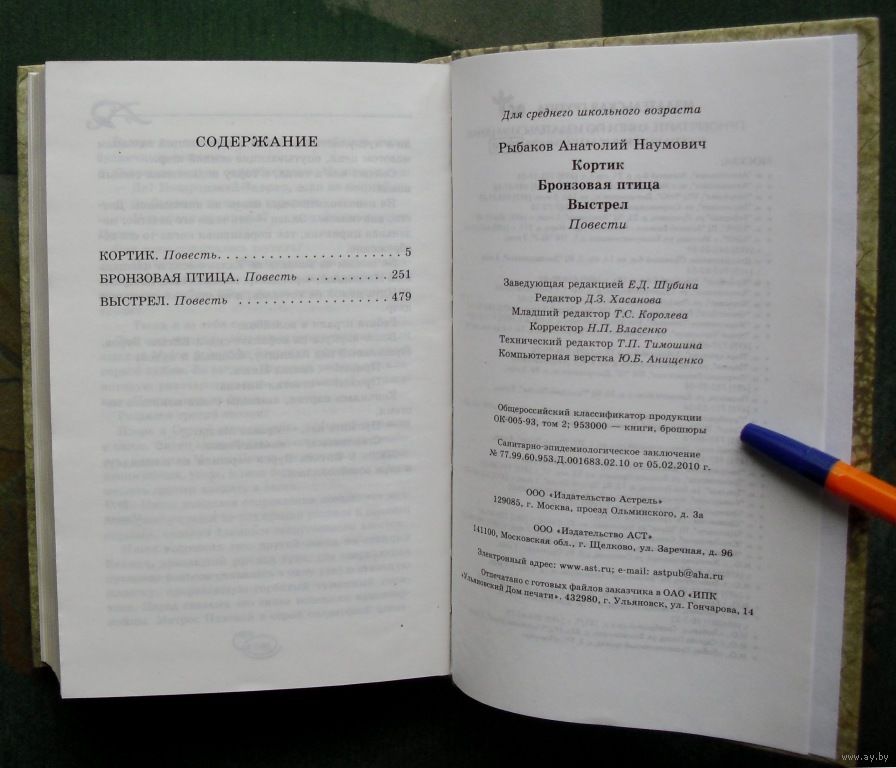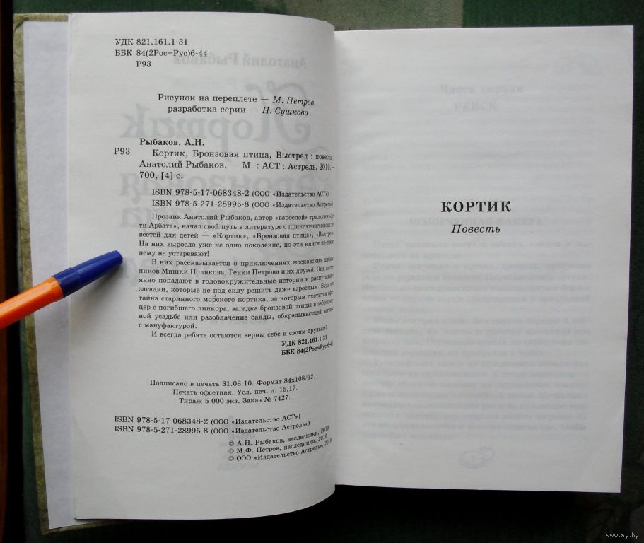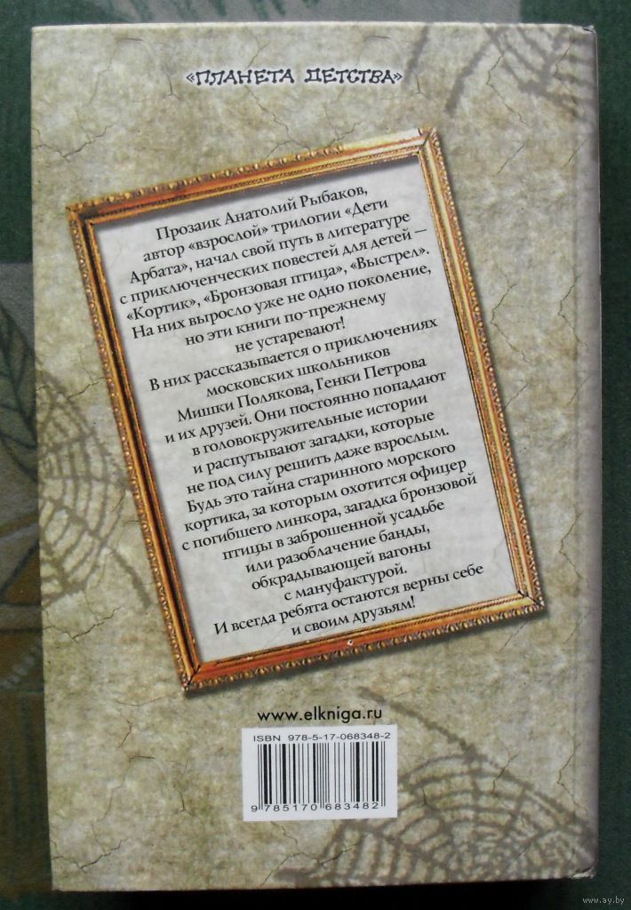 Повесть «Кортик», впервые изданная в 1948 году, стала подлинной классикой советской детской литературы. Эта история, полная тайн, находок и опасных приключений, открыла знаменитую «арбатскую» трилогию Анатолия Рыбакова о Мише Полякове и его друзьях, которую продолжили «Бронзовая птица» и «Выстрел».