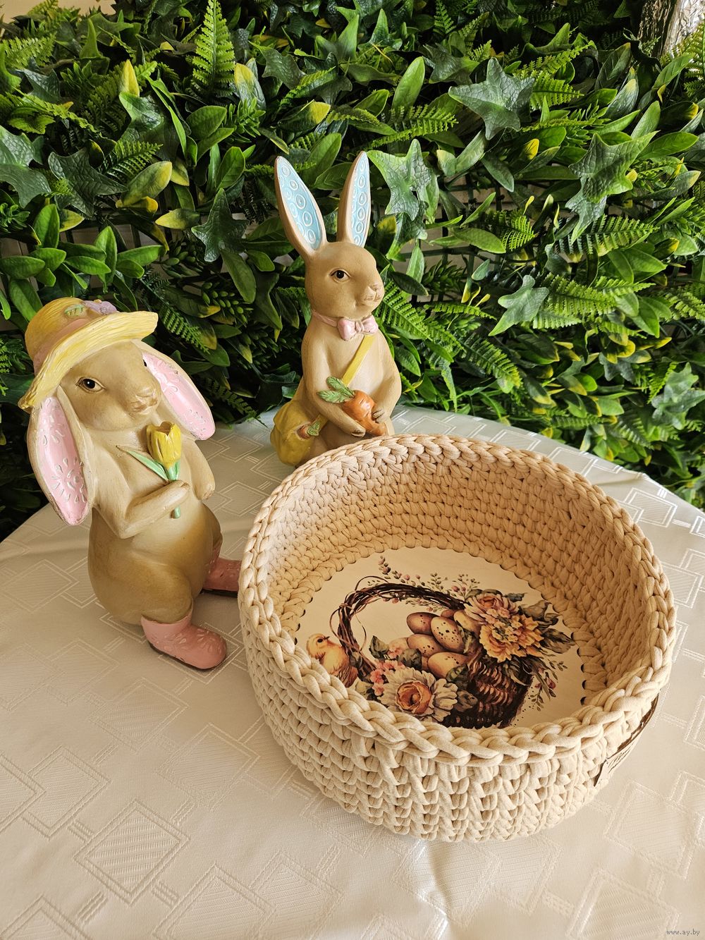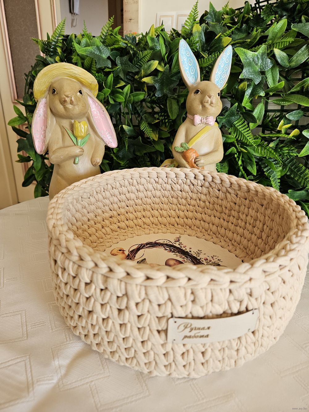 Красивая. Фото немного искажает вязку. Высота 10см, диаметр 22см.