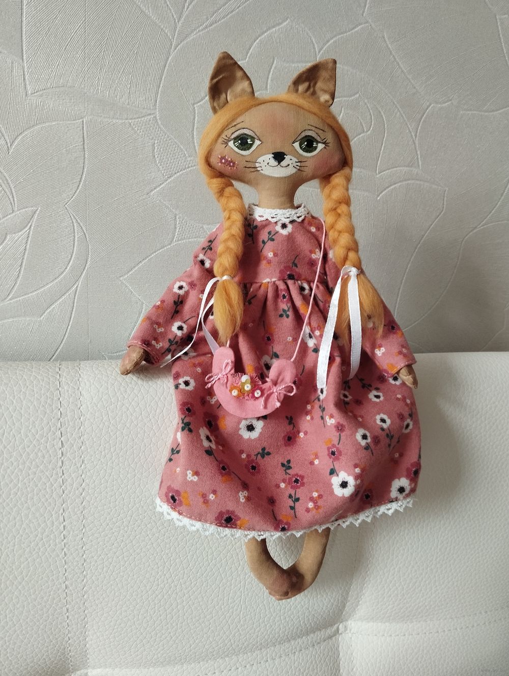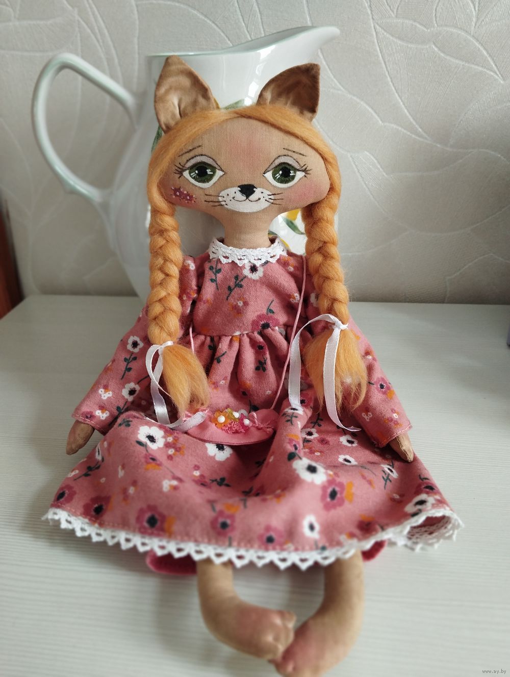 Кошечка куколка ручной работы из текстиля высота 38 см ручки подвижны