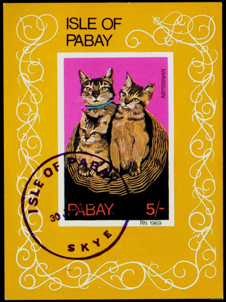 Кошки Пабей 1969 год блок из 1 беззубцовой марки