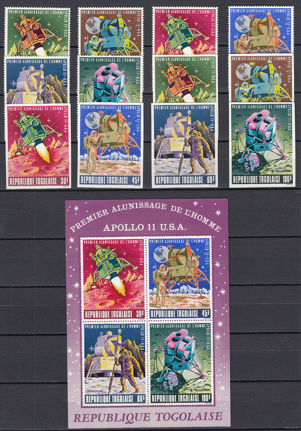 Космос. Аполлон 11. Того. 1969. 6 марок с/з, 6 марок б/з и 1 блок. Michel N 703-708, бл40 (115,5 е)