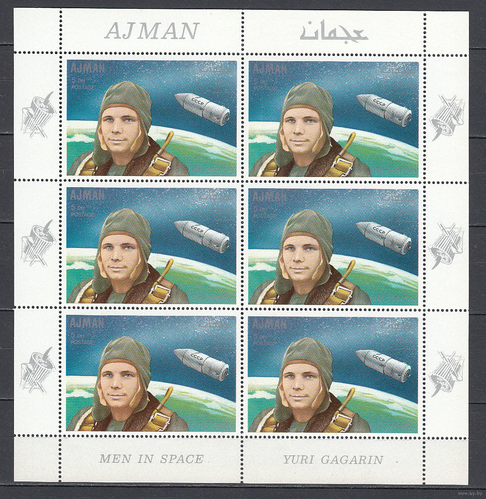 Космос. Гагарин. Аджман. 1969. 1 малый лист. Michel N 333 (- е)