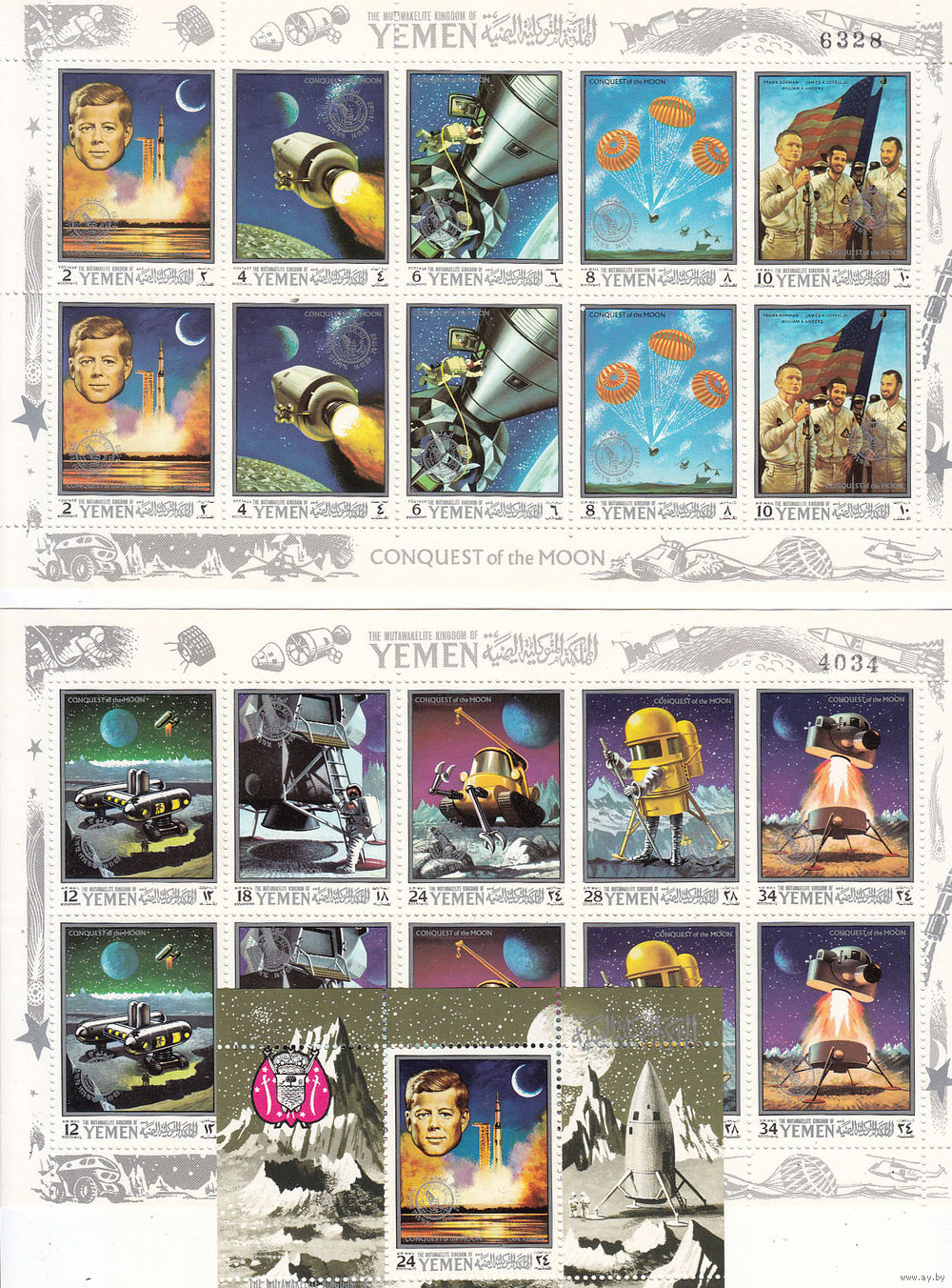 Космос. Йемен (Королевство). 1969. 2 малых листа и 1 блок. Michel N 741-750, бл156 (27,0 е).
