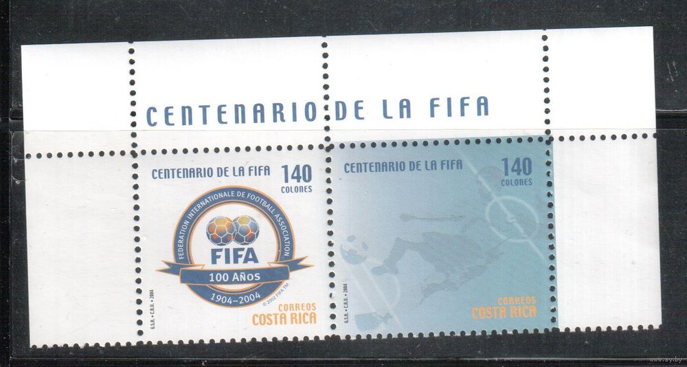 Коста-Рика-2004(Мих.1607-1608) **, Спорт, футбол, 100-лет ФИФА, (полная серия)(2)