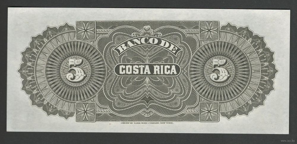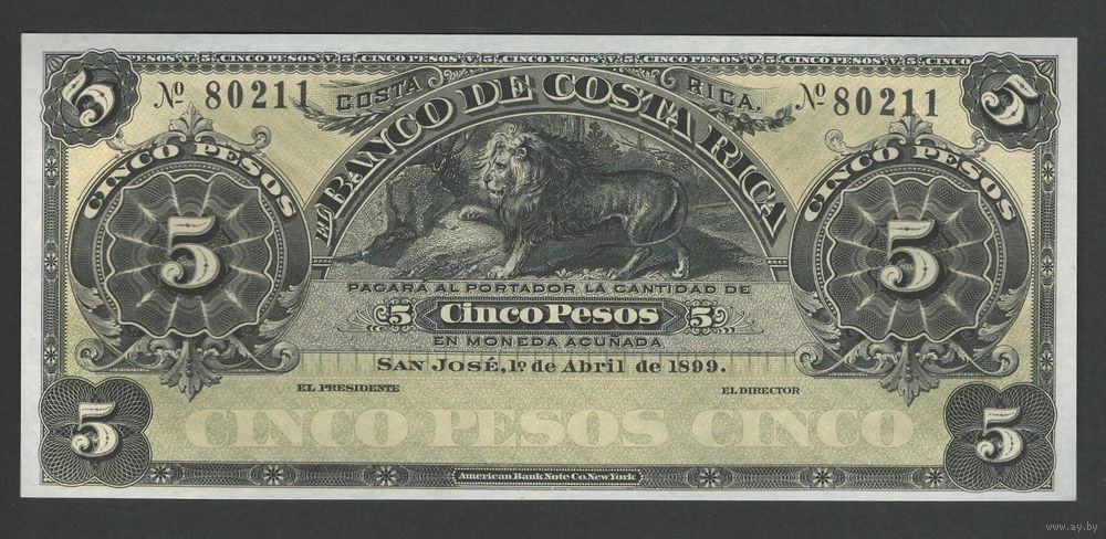 Коста-Рика 5 колон 1899 года. Тип PS-163. Состояние UNC