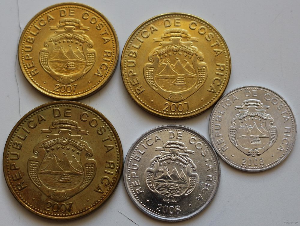 Коста-Рика Набор 5 монет (100, 50 ,25, 10, 5 колонов) 2007-2008 год